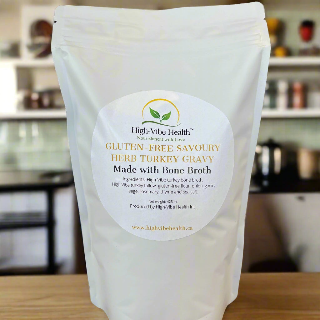 Our Gluten-Free Savoury Herb Turkey Gravy is rich, flavorful, and made with real turkey bone broth. Perfectly seasoned with herbs, it’s a wholesome and nourishing addition to your meals—delicious over turkey, chicken, or roasted vegetables.